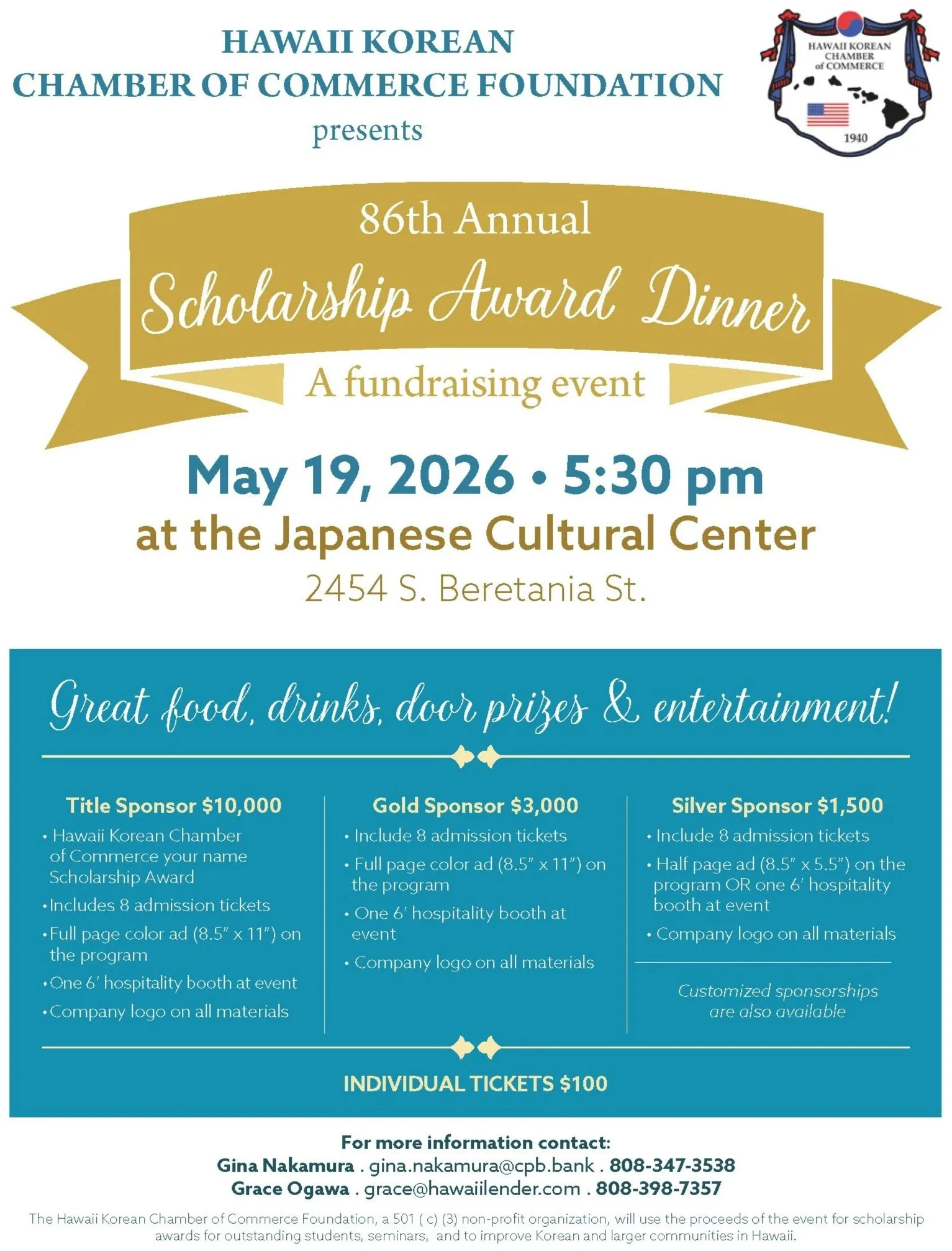 Hawaii Korean Chamber of Commerce your name Scholarship Award